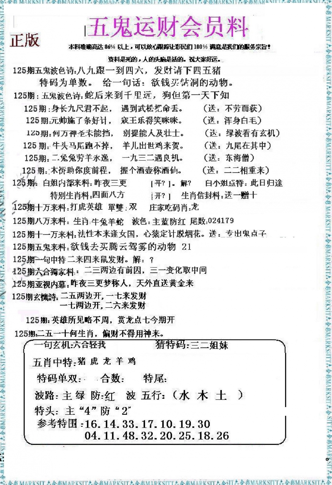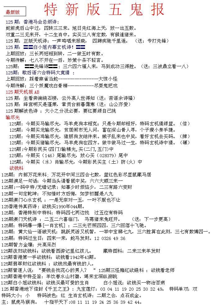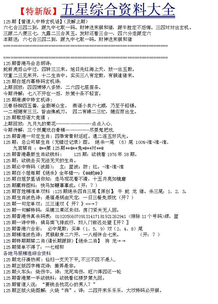 马经精版料(荐)