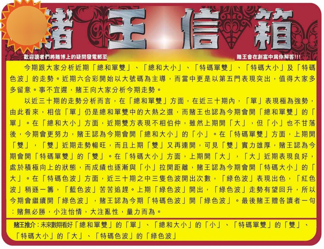 马经王牌料(荐)
